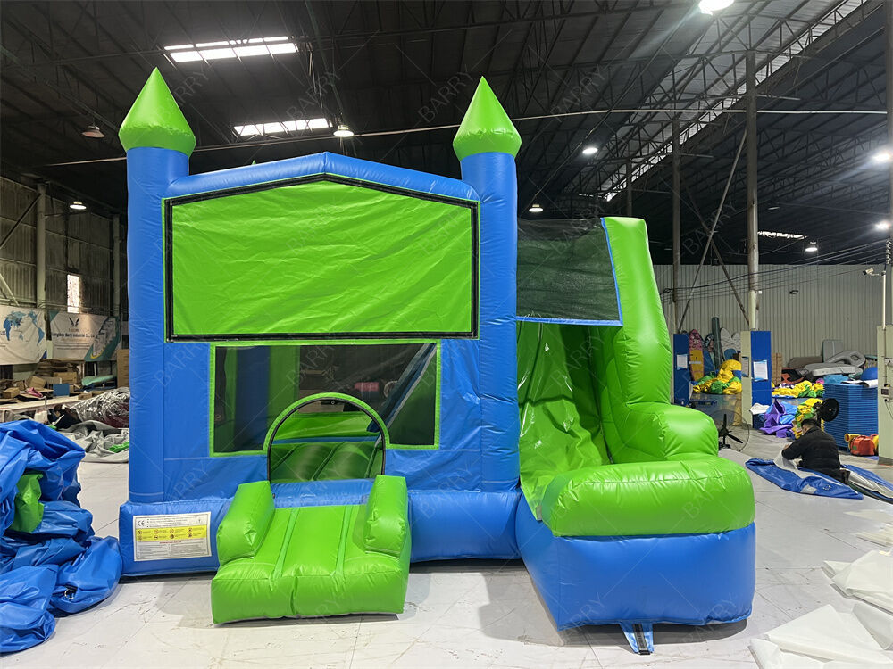 Dieses klassische Hüpfburg-Modell im Burgstil mit Rutsche ist eine vielseitige, leistungsstarke Ergänzung für jedes Partyverleih-Inventar, jeden Familiengarten oder jede kommerzielle Veranstaltung. Entworfen mit einer sauberen, leeren Frontplatte und einem kräftigen blau-grünen Farbschema, bietet es endlose Anpassungsmöglichkeiten, um Ihre Marke, Ihr Thema oder Ihre Veranstaltungsbedürfnisse zu erfüllen.
